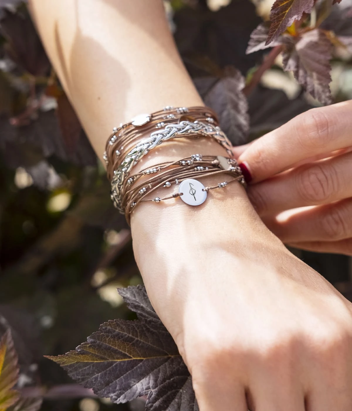 Ils se portent mélangés à d’autres bracelets de nos collections et se placent aussi bien sur un poignet d’homme que de femme.