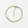 Bracelet ajustable en acier dorĂ© Ă lâor fin et mĂ©langĂ© dâune enfilade de pierres fines. Taimiti est un prĂ©nom Tahitien qui signifie « lâeau salĂ©e ».