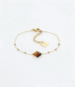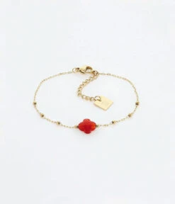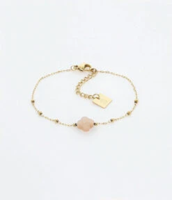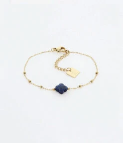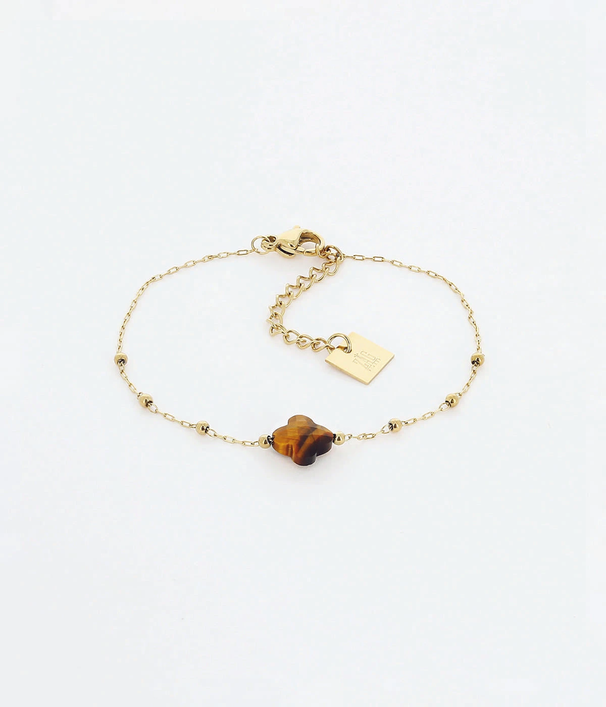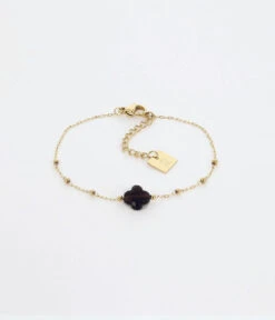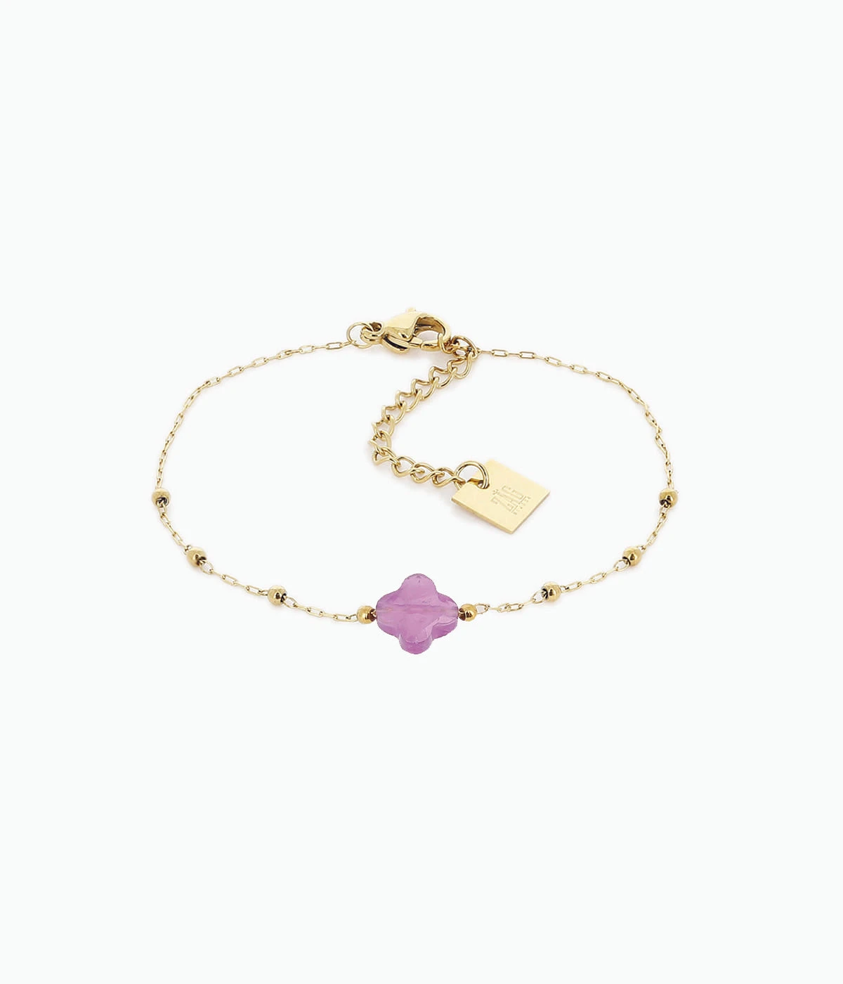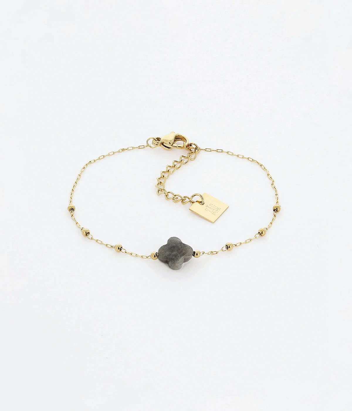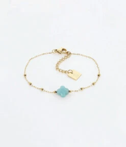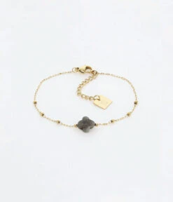 Bracelet chaĂźne « chapelet » en acier uni ou dorĂ© Ă l’or fin, sur lequel est attachĂ©e une pierre naturelle facettĂ©e en forme de trĂšfle.