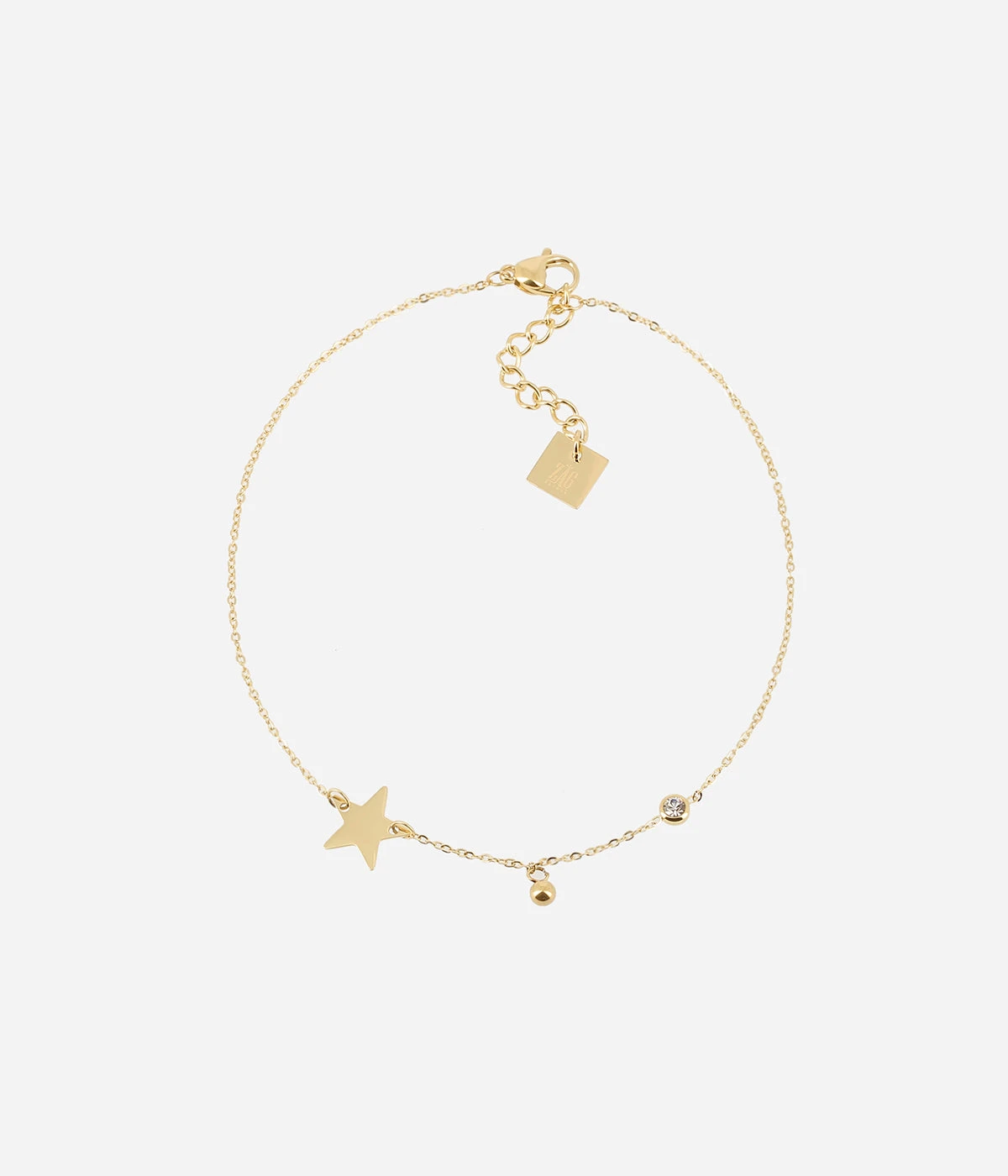 Chaîne de cheville en acier uni ou doré à l’or fin sur laquelle une étoile est attachée.