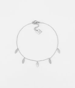 Similaire à notre incontournable chaîne de cheville « Confettis », cette nouvelle pièce en acier uni ou doré à l’or fin est composée de petites pampilles plates en métal imitant une feuille de thé.