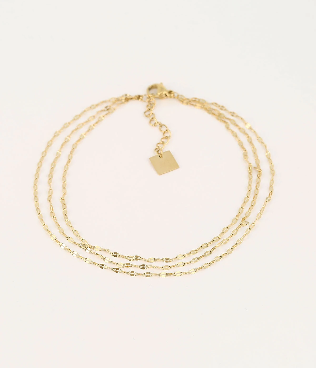 Triple chaîne de cheville en acier uni ou doré à l’or fin.
