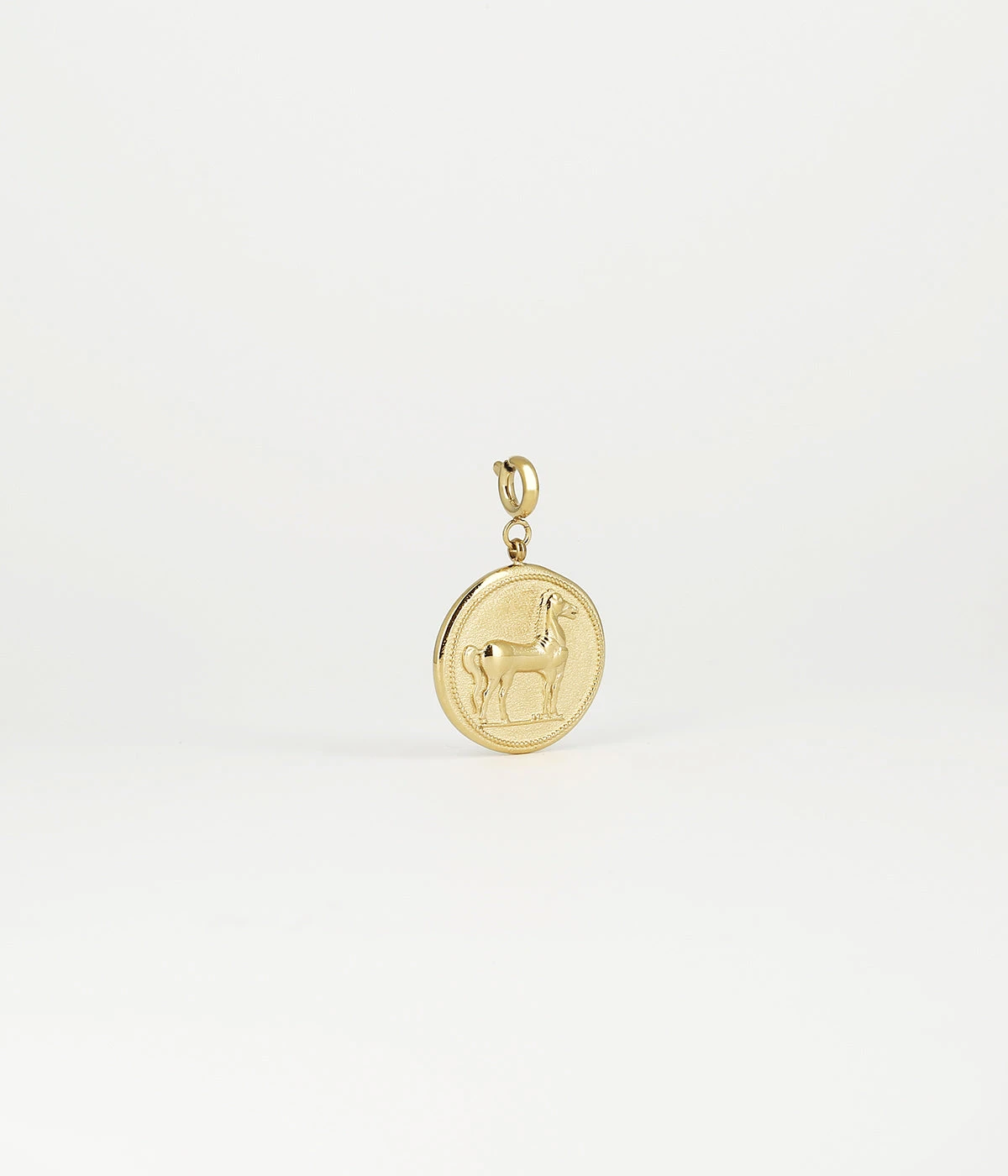 Ce charm en acier dorĂ© Ă l’or fin, se compose d’un mousqueton sur lequel est accrochĂ©e une mĂ©daille avec un cheval.