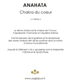Ici, le Chakra du Cœur est symbolisé par la malachite.