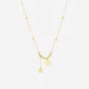 Collier en acier uni ou dorĂ© Ă l’or fin. Un ovale de mĂ©tal laquĂ© d’un cristal en serti clos est placĂ© entre les deux chaĂźnes.Â