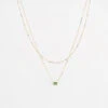 Collier double chaĂźne en acier dorĂ© Ă lâor fin. Au centre du collier deux maillons trĂšs contemporains pavĂ©s de zirconiums sâentrelacent pour former un motif qui se place au creux du cou.