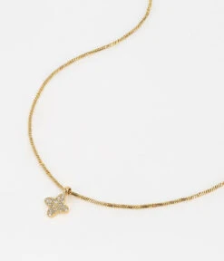Collier chaĂ®ne brillante en acier uni ou dorĂ© Ă l’or fin sur lequel est attachĂ© un pendentif fleur stylisĂ© serti de zirconiums.
