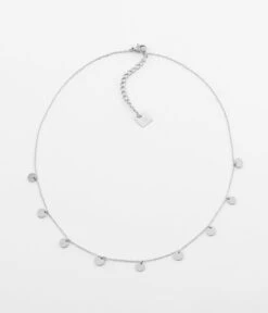 Ce collier iconique de notre collection d’inspiration gĂ©omĂ©trique est composĂ© d’une petite chaĂźnette en acier uni ou dorĂ© Ă l’or fin, parsemĂ©e de petites pampilles plates.