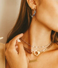 Collier chaĂźne trĂšs contemporain, en acier uni ou dorĂ© Ă l’or fin, terminĂ© d’un fermoir « crochet ».