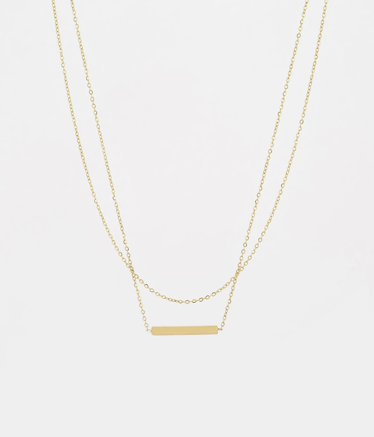 Collier double chaĂźne en acier uni ou dorĂ© Ă l’or fin.