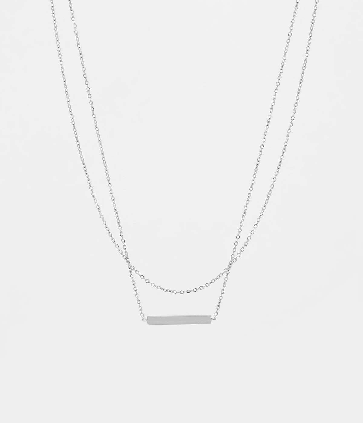 Collier double chaĂźne en acier uni ou dorĂ© Ă l’or fin.