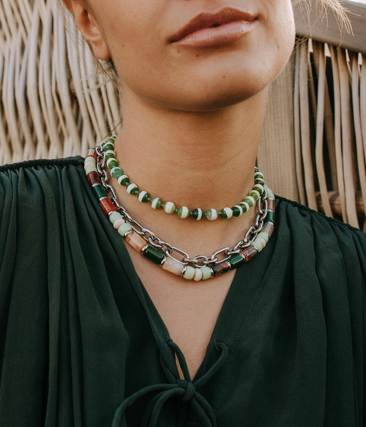 Parfait Ă porter en accumulation pour donner un look rock Ă votre tenue. Vous pouvez Ă©galement porter ce collier en ras de cou.Â