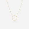 Collier en acier dorĂ© Ă l’or fin sur lequel un pendentif rond nacrĂ©, serti de zirconiums est attachĂ©.