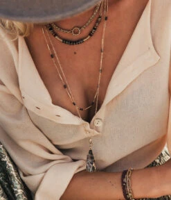 Collier en acier uni ou dorĂ© Ă l’or fin, en maillons, dĂ©corĂ© d’un anneau au niveau du fermoir.