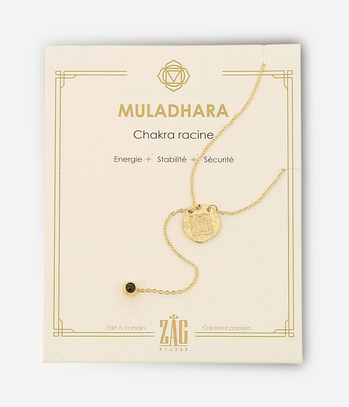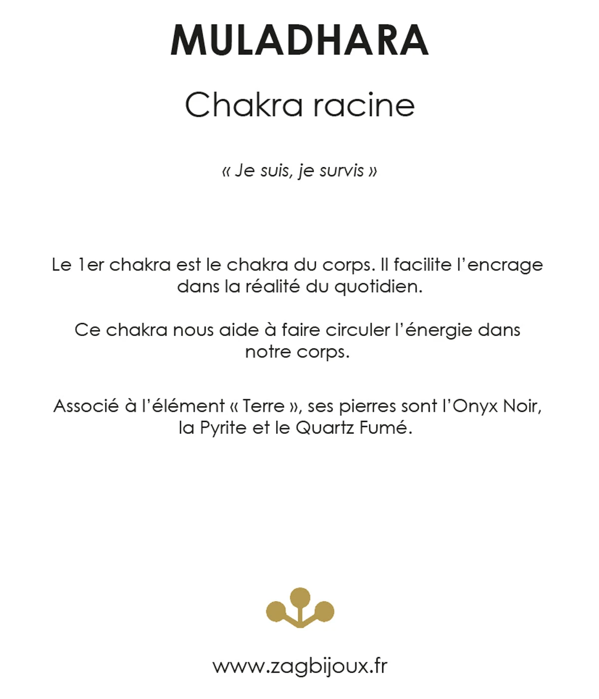 Ici, le Chakra Racine est symbolisĂ© par l’onyx noir.