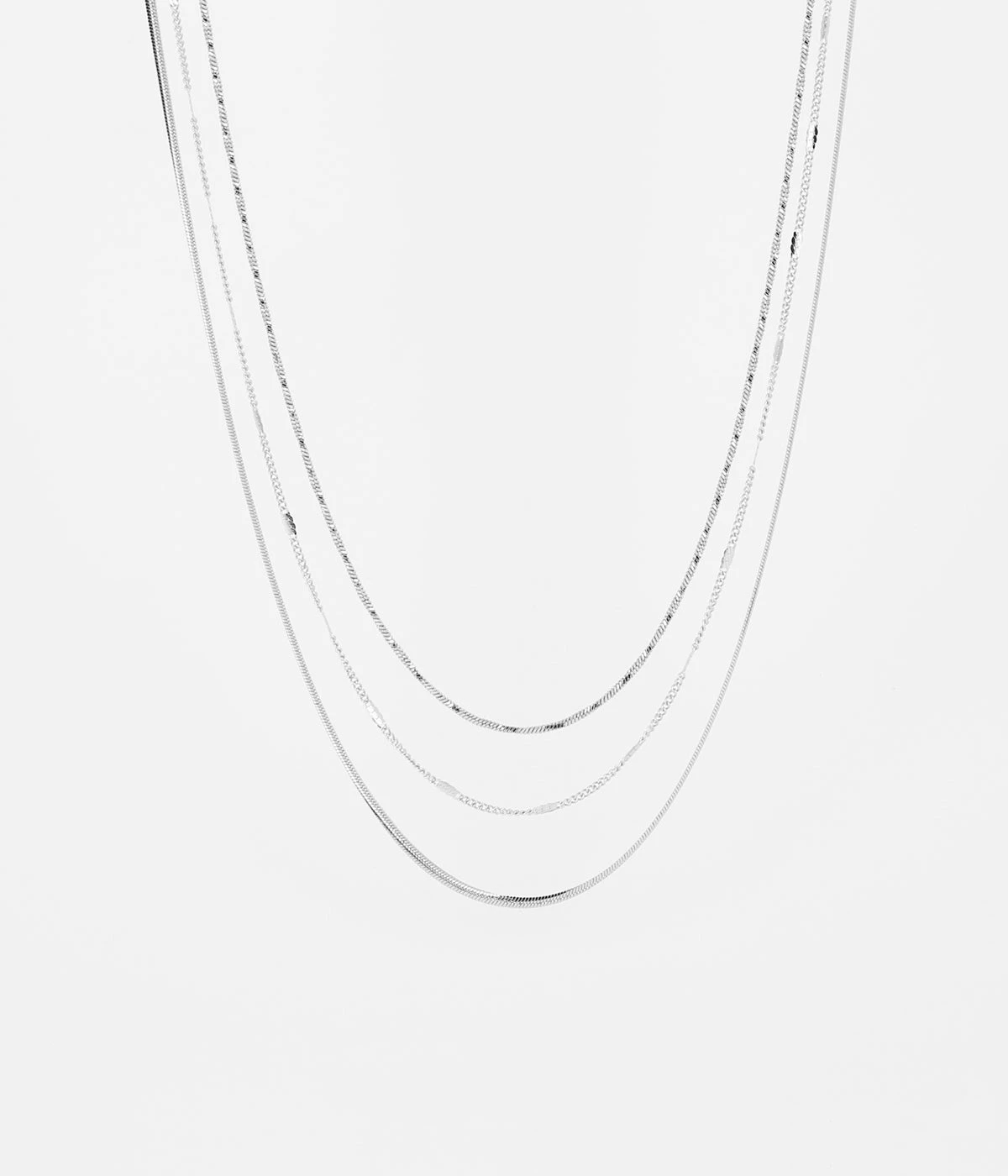 Collier chaĂźnettes en acier uni ou dorĂ© Ă lâor fin formĂ© de trois chaĂźnes aux diffĂ©rents maillons. Les chaĂźnes de ce collier sâinstallent en cascade sur le cou dans un effet trĂšs prĂ©cieux.