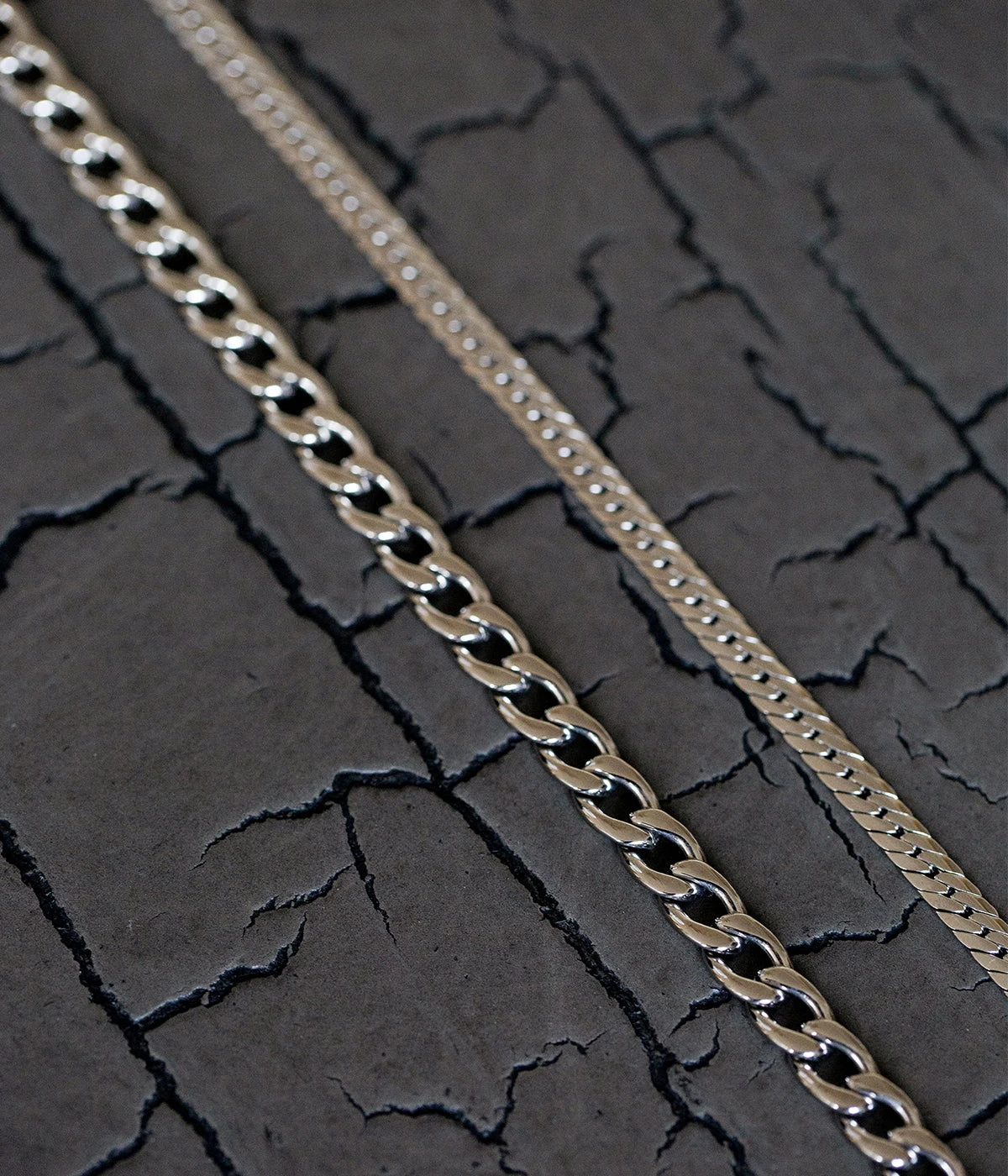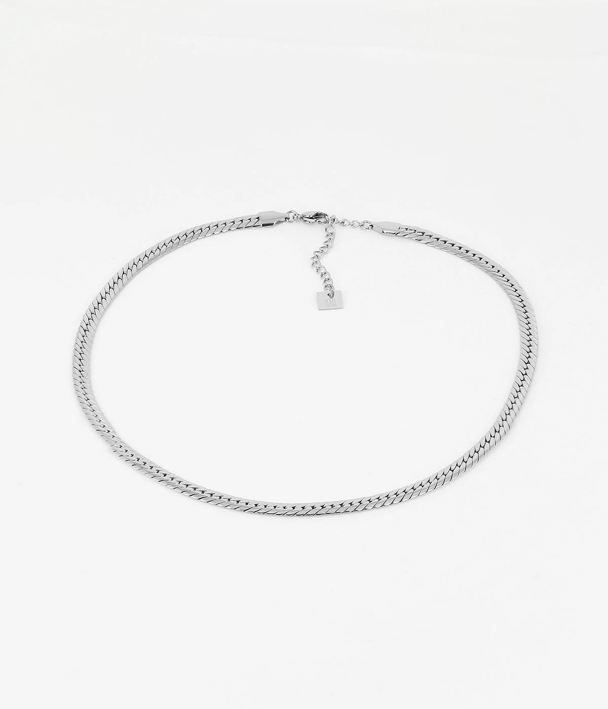 Collier maille anglaise, en acier uni ou doré à l’or fin.