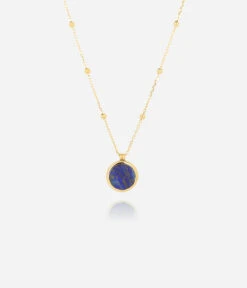 Collier en acier dorĂ© Ă l’or fin sur lequel se trouve un mĂ©daillon constituĂ© d’une pierre naturelle.