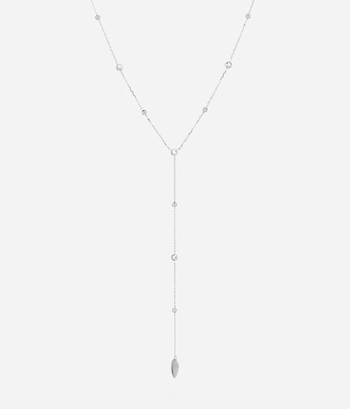 Collier en acier uni ou en acier dorĂ© Ă l’or fin constituĂ© de plusieurs zirconiums. Le collier est reliĂ© Ă une chaĂźnette au bout de laquelle se trouve une goutte dorĂ©.