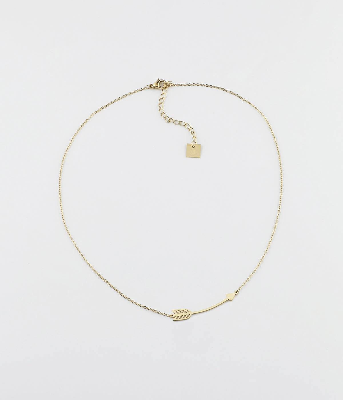 Collier chaĂźne en acier uni ou dorĂ© Ă l’or fin sur lequel est attachĂ© un motif de flĂšche.