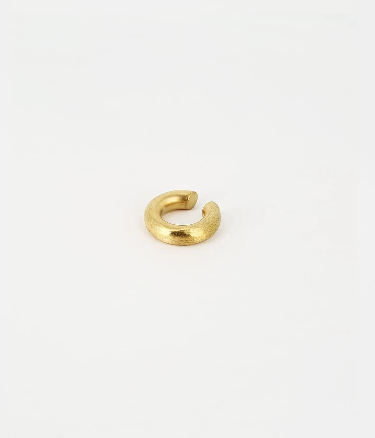 Un earcuff en acier dorĂ© Ă l’or fin qu’il suffit simplement d’enfiler sur le l’oreille.