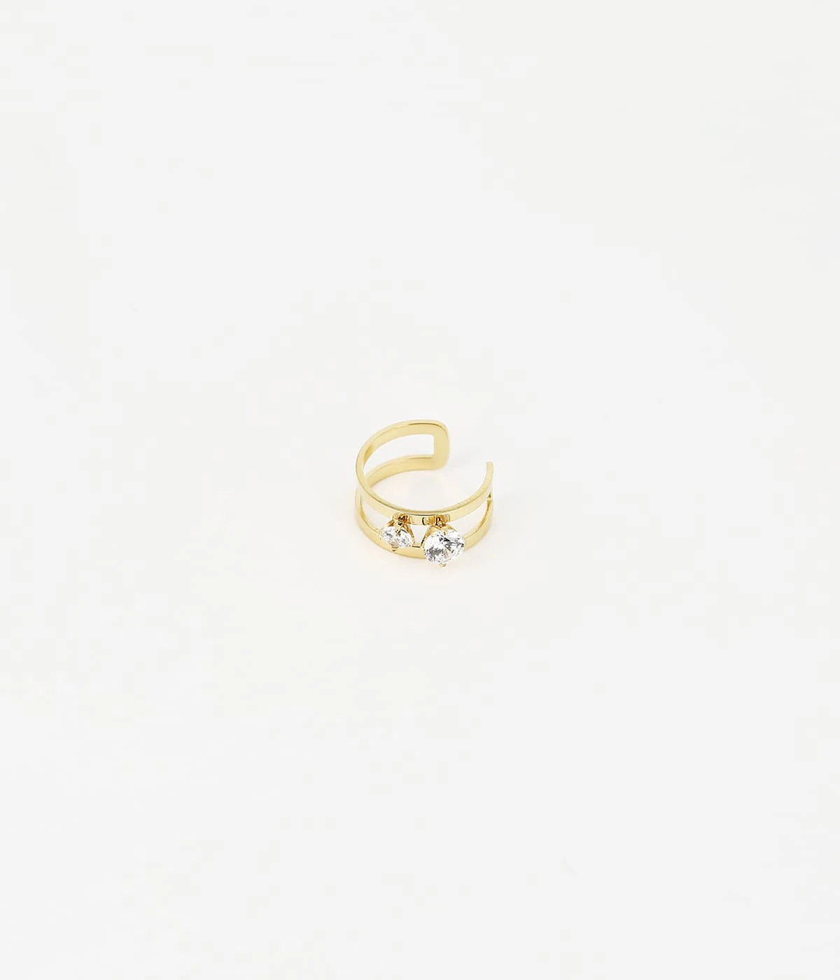 Earcuff en acier uni ou dorĂ© Ă l’or fin et serti de zirconiums brillants qui sâajuste sur le haut de lâoreille et se portent mĂ©langĂ©e avec dâautres boucles dâoreilles de nos collections.
