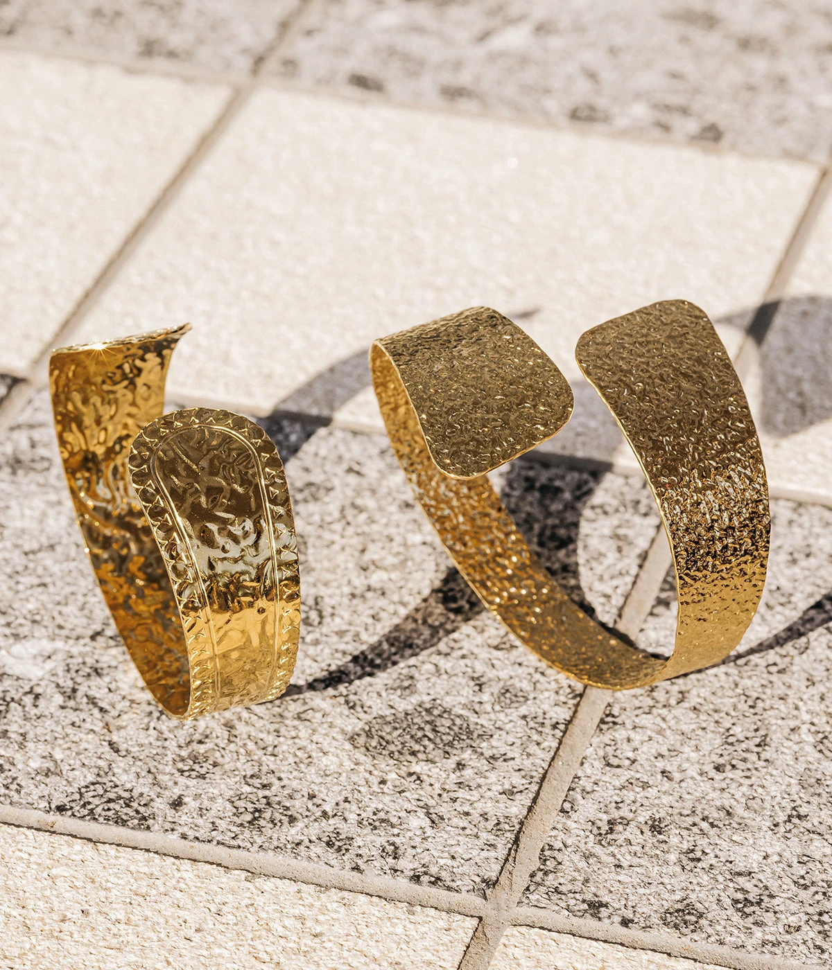 Jonc en acier dorĂ© Ă l’or fin martelĂ©.