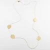 Collier long « à l’ancienne » en acier uni ou dorĂ© Ă l’or fin sur laquelle est accrochĂ©e une mĂ©daille de nacre.