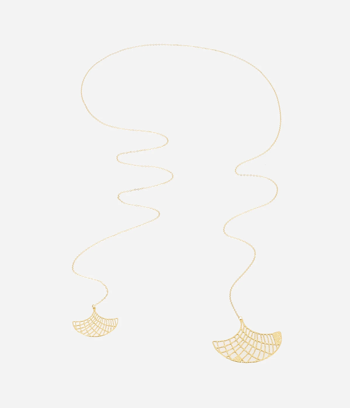 Collier long en acier dorĂ© Ă l’or fin avec deux formes tressĂ©es aux extrĂ©mitĂ©s.Â