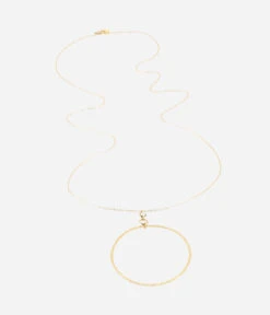 Sautoir en acier dorĂ© Ă l’or fin avec une petite pierre naturelle Ă la base qui relie un cercle martelĂ©.