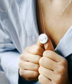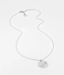 Collier en acier uni ou dorĂ© Ă l’or fin sur lequel est suspendu un pendentif gravĂ© de la constellation reprĂ©sentant le signe astrologique Scorpion.